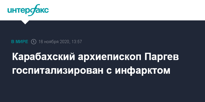 Карабахский архиепископ Паргев госпитализирован с инфарктом