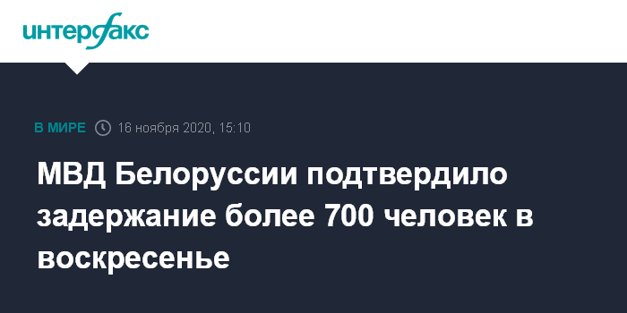 МВД Белоруссии подтвердило задержание более 700 человек в воскресенье