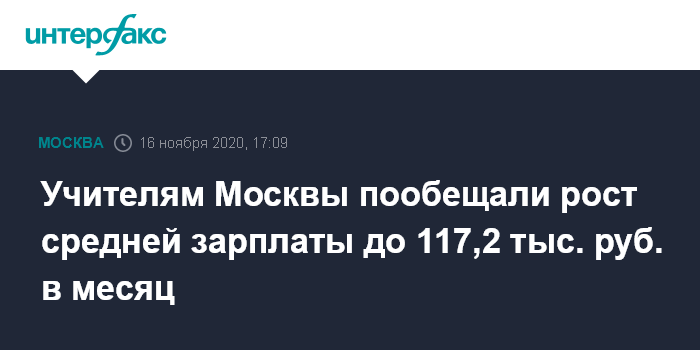 В октябре заммэра Москвы по вопросам экономической политики и имущественно-земельных отношений Владимир Ефимов сообщил, что в январе-сентябре текущего года средняя зарплата учителей составила 116,9 тыс. рублей в месяц.