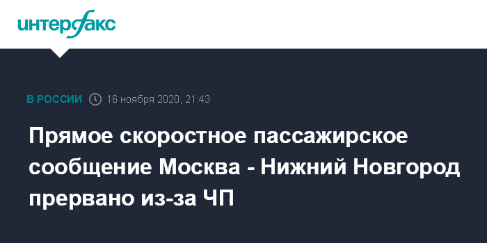 Прямое скоростное пассажирское сообщение Москва - Нижний Новгород прервано из-за ЧП