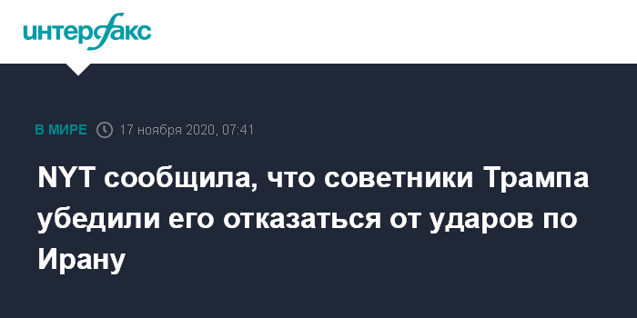 Москва. 17 ноября. INTERFAX.RU - Ближайшим советникам Дональда Трампа удалось убедить президента в нецелесообразности нанесения удара по ядерному объекту Ирана, сообщила газета The New York Times со ссылкой на четырех информированных источников.