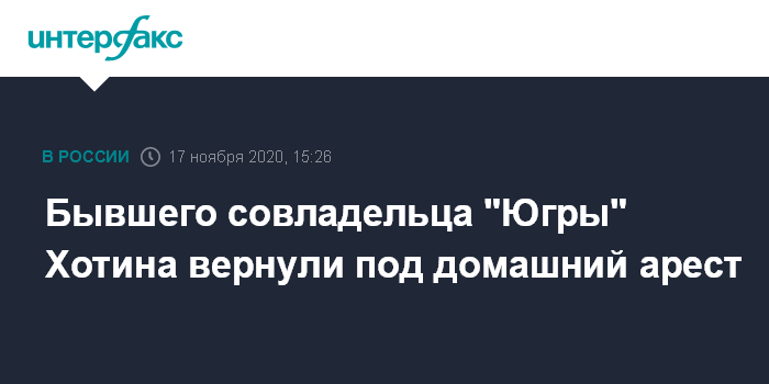 Бывшего совладельца "Югры" Хотина вернули под домашний арест