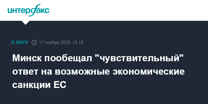 "Реакция будет действительно адекватной и очень чувствительной для наших европейских партнеров. Еще раз повторю: не мы были инициаторами - мы лишь старались, как нам кажется, адекватно реагировать на те вызовы, с которыми столкнулась и сталкивается Белоруссия", - подчеркнул глава МИД.