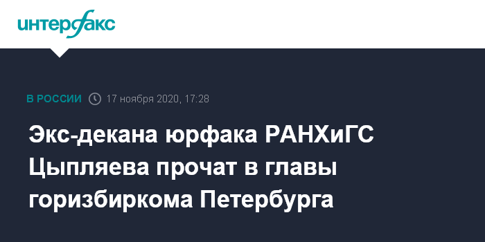 Москва. 17 ноября. INTERFAX.RU - ЦИК РФ рассматривает кандидатуру бывшего декана юридического факультета Северо-Западного института управления РАНХиГС Сергея Цыпляева на должность члена Санкт-Петербургской избирательной комиссии посте отставки председателя Виктора Миненко.