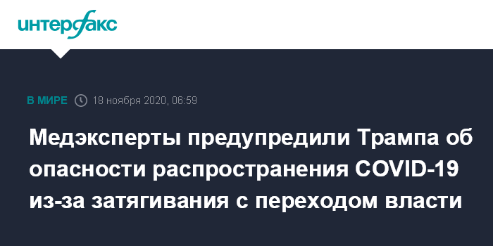 Медэксперты предупредили Трампа об опасности распространения COVID-19 из-за затягивания с переходом власти