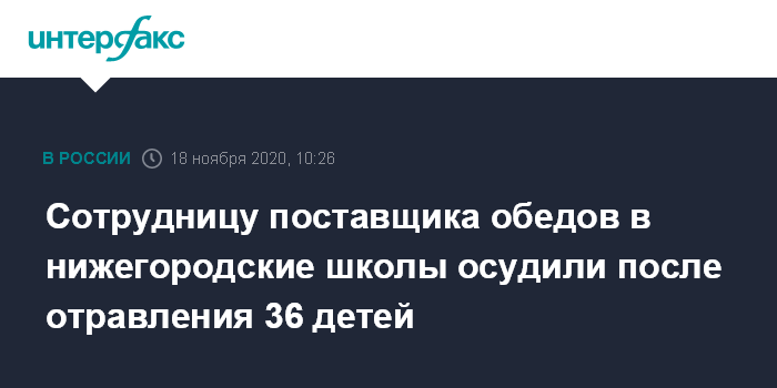 Москва. 18 ноября. INTERFAX.RU - Суд приговорил к году ограничения свободы сотрудницу компании-поставщика питания в школы Нижнего Новгорода по делу о массовом отравлении детей осенью прошлого года.