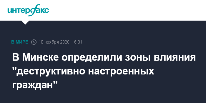 Москва. 18 ноября. INTERFAX.RU - В столице Белоруссии определили территории, которые подвержены влиянию "деструктивно настроенных граждан", там будут наводить порядок, сообщил заместитель председателя Мингорисполкома Артем Цуран.