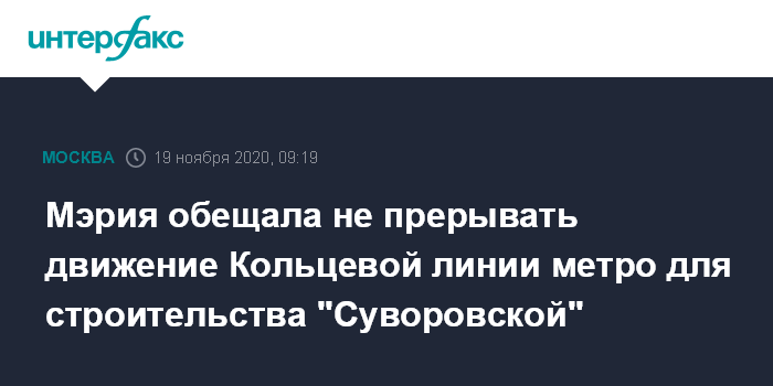 Мэрия обещала не прерывать движение Кольцевой линии метро для строительства "Суворовской"
