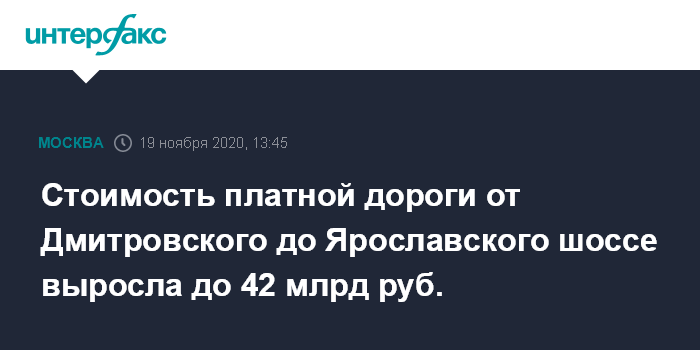Стоимость платной дороги от Дмитровского до Ярославского шоссе выросла до 42 млрд руб.