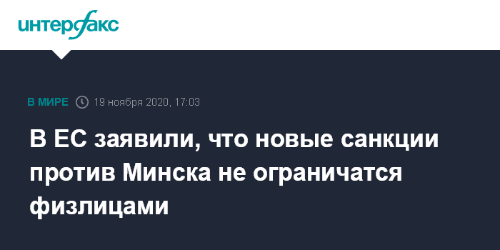Москва. 19 ноября. INTERFAX.RU - Следующий раунд санкций Евросоюза против Белоруссии не ограничится физлицами, а будет включать организации и частный бизнес, заявил на пресс-конференции в четверг глава дипломатии ЕС Жозеп Боррель.