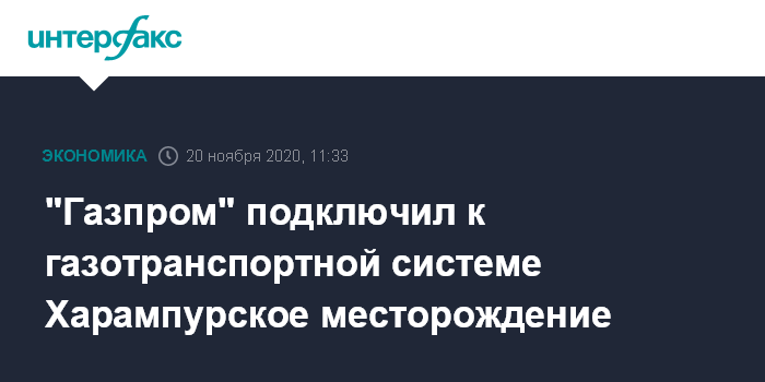 Москва. 20 ноября. INTERFAX.RU - "Газпром" подключил к газотранспортной системе (ГТС) Харампурское месторождение "Роснефти" и BP, сообщает корпоративное издание "Газпром трансгаз Сургута".