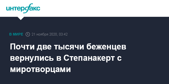 "20 ноября 2020 года российские миротворцы сопроводили очередную колонну автобусов и личного автотранспорта с беженцами в Нагорный Карабах с территории Республики Армения. 23 автобуса и 250 личных автомобилей проследовали из Еревана на главную площадь г. Степанакерта в сопровождении патрулей миротворческого контингента и военной полиции Российской Федерации", – говорится в сообщении.