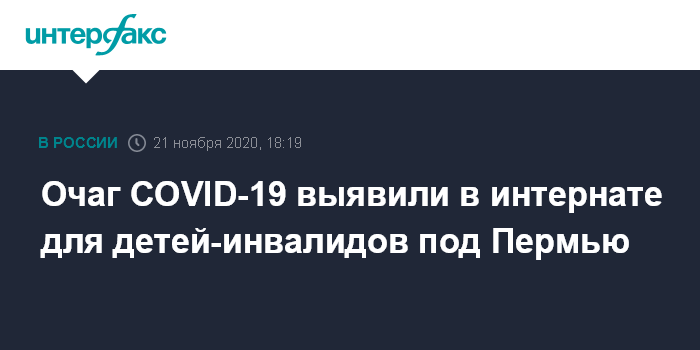 Москва. 21 ноября. INTERFAX.RU - Свыше двадцати пациентов Рудничного дома-интерната для детей-инвалидов в Кизеле (Пермский край) заразились коронавирусом, сообщается на сайте регионального Минздрава в субботу.
