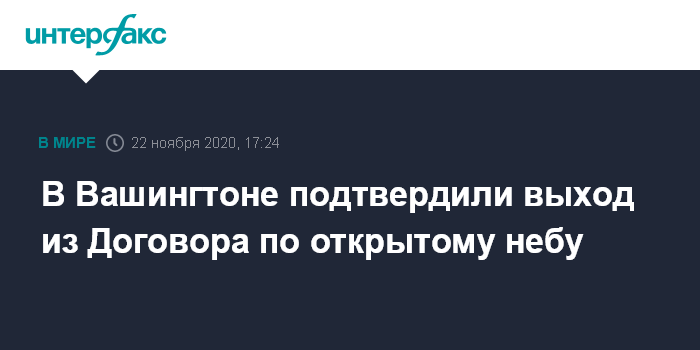 Москва. 22 ноября. INTERFAX.RU - Совет национальной безопасности США подтвердил в воскресенье, что Штаты более не являются участником Договора по открытому небу.