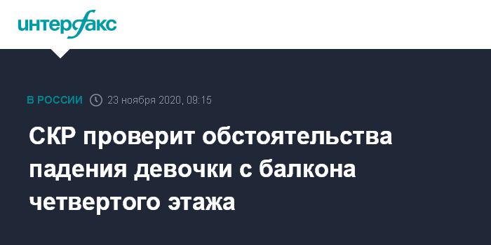 СКР проверит обстоятельства падения девочки с балкона четвертого этажа