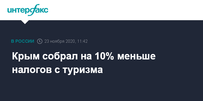 Москва. 23 ноября. INTERFAX.RU - С января по сентябрь 2020 года в бюджет Крыма поступило 2 256,9 млн рублей налогов от туристской отрасли, это на 9,8% меньше суммы налоговых поступлений, поступивших за аналогичный период 2019 года (2 503,4 млн рублей)". Об этом сообщили в Министерстве курортов региона.