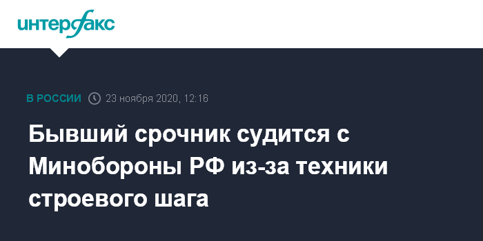 Истец требовал с ответчика 1 млн рублей, говорится в сообщении. В исковом заявлении Борзяков указывал, что на занятиях по строевой подготовке во время службы по призыву с июня 2018 года по июнь 2019 года получил "увечье и иные повреждения здоровья", испытал "физические и нравственные страдания". Причину он увидел в неуважительном отношении сотрудников Минобороны РФ, военного комиссариата Фрунзенского района Петербурга и военного комиссариата города к Конституции.
