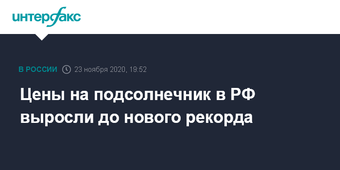 Москва. 23 ноября. INTERFAX.RU - Цены на подсолнечник и подсолнечное масло на российском рынке продолжили рост на прошлой неделе.