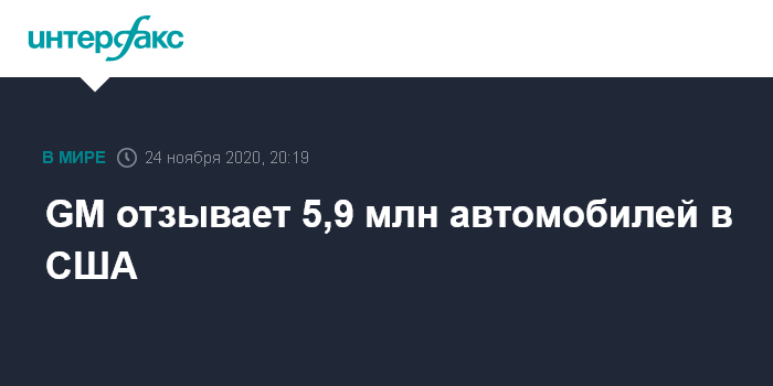Москва. 24 ноября. INTERFAX.RU - Американский автопроизводитель General Motors Co. согласился отозвать 5,9 млн внедорожников и легковых грузовиков для замены потенциально неисправного основного элемента - инфлятора - подушек безопасности Takata, что может стоить компании более $1 млрд, пишет The Wall Street Journal.