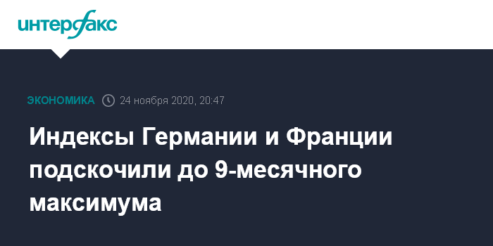 Москва. 24 ноября. INTERFAX.RU - Фондовые индексы стран Западной Европы повысились по итогам торгов во вторник после того, как Управление общих служб (GSA) США сообщило Джо Байдену, объявившему о своей победе на президентских выборах в Соединенных Штатах, о готовности начать процесс передачи власти.
