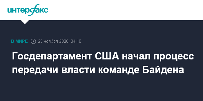 "Сегодня (во вторник по времени Вашингтона - ИФ) мы начали процесс, посмотрим, каким было решение Управления общих служб (GSA), и сделаем все, что требуется по закону. Мы будем поступать так, чтобы это сработало", - сказал Помпео в интервью телеканалу Fox News.