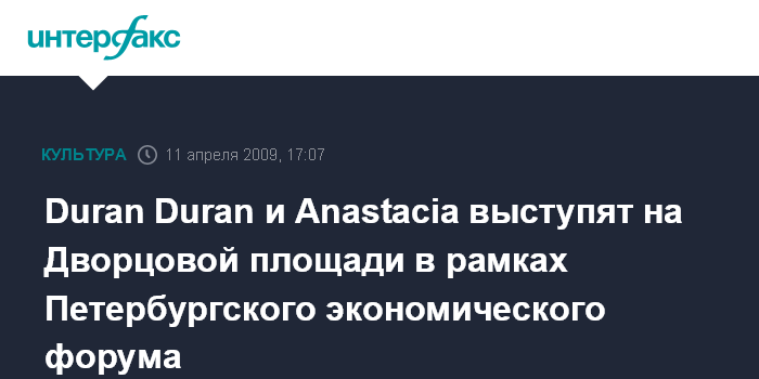 Duran Duran и Anastacia выступят на Дворцовой площади в рамках Петербургского экономического форума