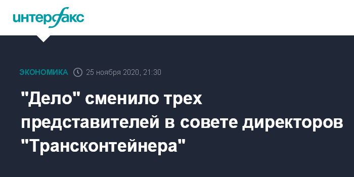 Москва. 25 ноября. INTERFAX.RU - Группа "Дело", которой принадлежит 100% ПАО "Трансконтейнер", 25 ноября досрочно прекратила полномочия членов совета директоров оператора и избрала новый состав.