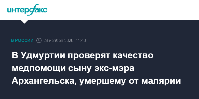 В Удмуртии проверят качество медпомощи сыну экс-мэра Архангельска, умершему от малярии