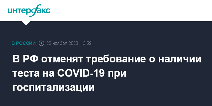 В РФ отменят требование о наличии теста на COVID-19 при госпитализации