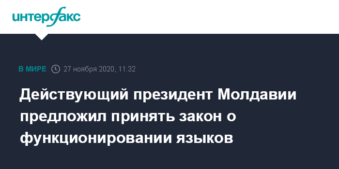 Москва. 27 ноября. INTERFAX.RU - Действующий президент Молдавии Игорь Додон предлагает принять новый закон о функционировании языков. Об этом он заявил в пятницу в ходе передачи "Президент Игорь Додон отвечает" в прямом эфире в социальных сетях.