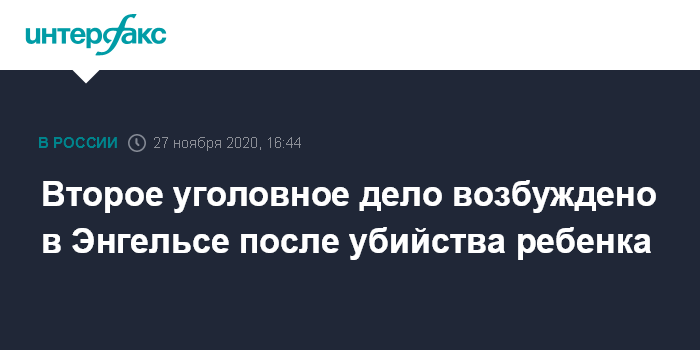 Москва. 27 ноября. INTERFAX.RU - Второе уголовное дело возбуждено после резонансного убийства ребенка в городе Энгельс Саратовской области.