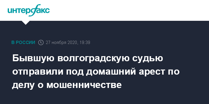 Москва. 27 ноября. INTERFAX.RU - Басманный суд Москвы отправил под домашний арест ранее возглавлявшую Дзержинский районный суд Волгограда экс-судью Юлию Добрынину, ставшей фигуранткой уголовного дела о мошенничестве.