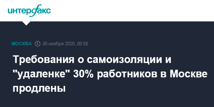 Требования о самоизоляции и "удаленке" 30% работников в Москве продлены