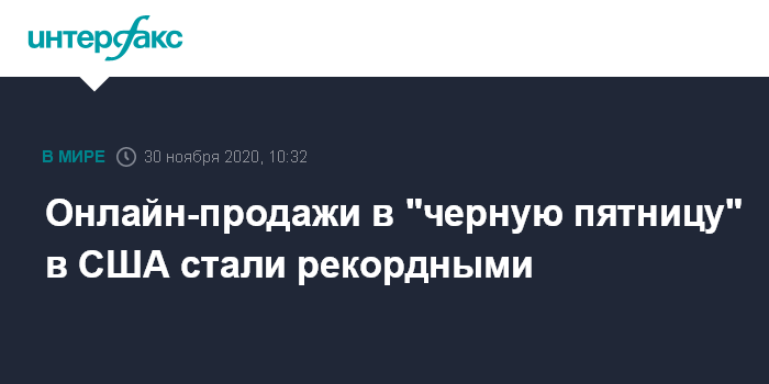 Москва. 30 ноября. INTERFAX.RU - Онлайн-продажи в сезонную "черную пятницу" в США достигли рекордных $9 млрд, что на 22% больше прошлогоднего рекорда, сообщает Associated Press со ссылкой на данные Adobe Analytics.