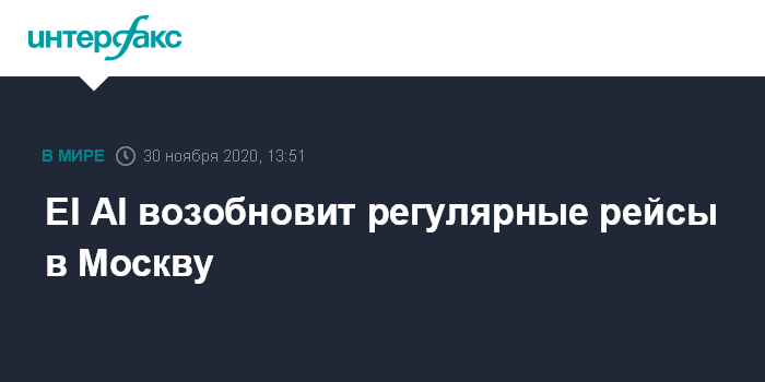 Москва. 30 ноября. INTERFAX.RU - Израильская авиакомпания El Al возобновляет регулярные рейсы в Москву из тель-авивского аэропорта им. Бен-Гуриона.
