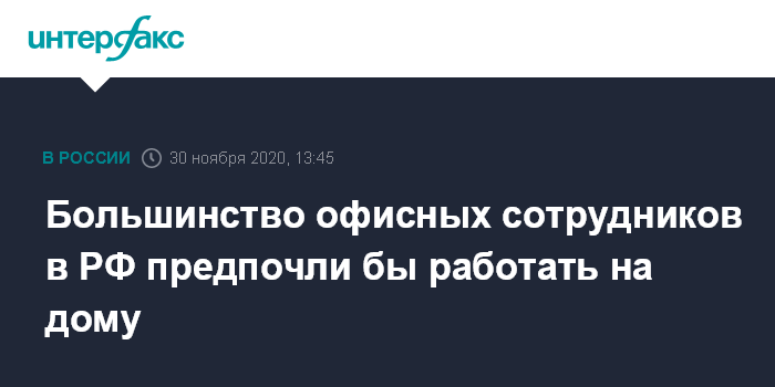 Москва. 30 ноября. INTERFAX.RU - Почти три четверти офисных работников (71%), служебная деятельность которых допускает дистанционный формат, предпочитают иметь рабочее место у себя дома, свидетельствуют данные опроса Исследовательского центра портала SuperJob.ru, поступившие в понедельник в "Интерфакс".