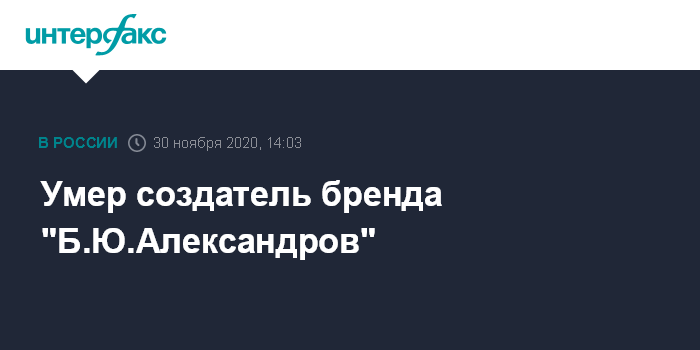 Умер создатель бренда "Б.Ю.Александров"