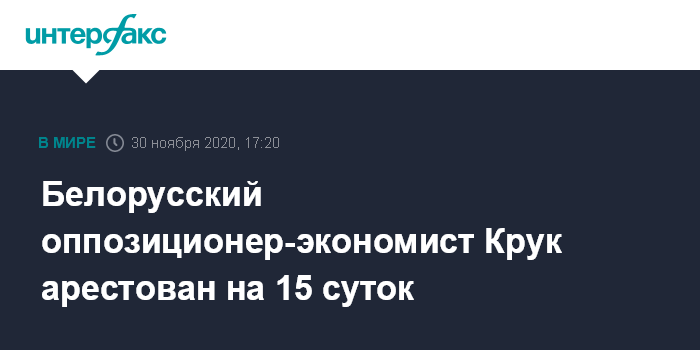 Москва. 30 ноября. INTERFAX.RU - Член основного состава Координационного совета белорусской оппозиции, экономист Дмитрий Крук получил 15 суток административного ареста за нарушение порядка организации или проведения массовых мероприятий (часть 1 статьи 23.34 КоАП. Об этом сообщил Координационный совет в своем телеграм-канале в понедельник.