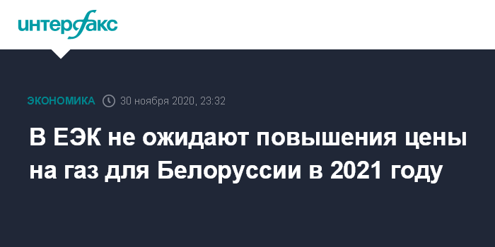 В ЕЭК не ожидают повышения цены на газ для Белоруссии в 2021 году
