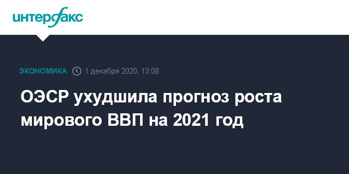 Москва. 1 декабря. INTERFAX.RU - Перспективы выхода мировой экономики из кризиса, вызванного пандемией COVID-19, улучшились благодаря воодушевляющим новостям о прогрессе в разработке эффективных вакцин, однако краткосрочный экономический фон остается крайне неопределенным, говорится в полугодовом прогнозе Организации экономического сотрудничества и развития (ОЭСР) Economic Outlook; в документе также ухудшен прогноз роста мирового ВВП на 2021 год.