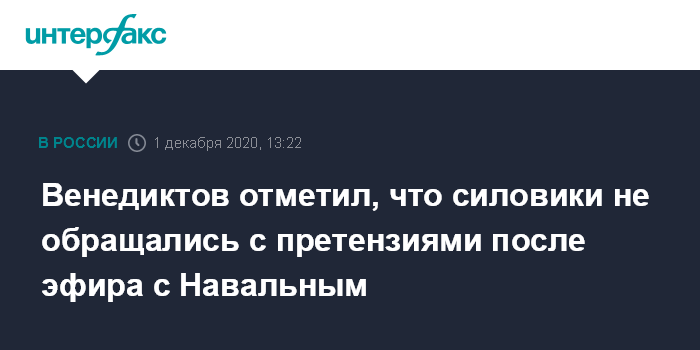 Венедиктов отметил, что силовики не обращались с претензиями после эфира с Навальным