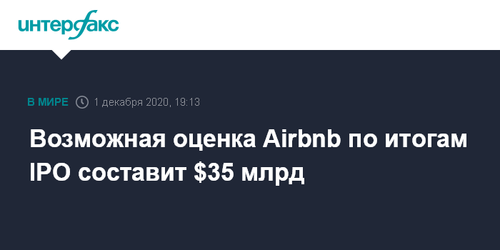 Возможная оценка Airbnb по итогам IPO составит $35 млрд