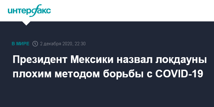 Москва. 2 декабря. INTERFAX.RU - Президент Мексики Андрес Мануэль Лопес Обрадор заявил, что выступает против введения очень жестких ограничительных мер для борьбы против распространения коронавируса COVID-19.