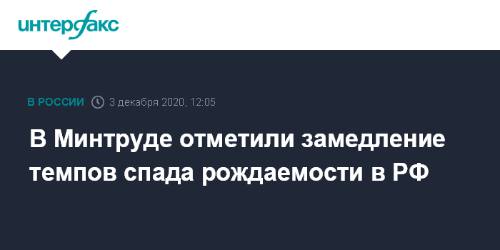 Москва. 3 декабря. INTERFAX.RU - Снижение рождаемости в России продолжается, за первые девять месяцев 2020 года родилось почти на 50 тысяч детей меньше, чем за тот же период в прошлом году, однако при этом темпы спада замедляются, сообщила заместитель министра труда и соцзащиты Ольга Баталина.