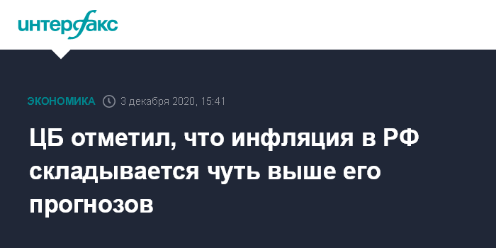 ЦБ отметил, что инфляция в РФ складывается чуть выше его прогнозов