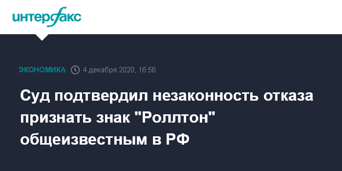 Суд подтвердил незаконность отказа признать знак "Роллтон" общеизвестным в РФ