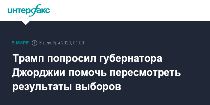 Москва. 6 декабря. INTERFAX.RU - Президент США Дональд Трамп позвонил губернатору Джорджии Брайану Кемпу и попросил его помочь пересмотреть итоги президентских выборов в штате, сообщила The Washington Post со ссылкой на источник.