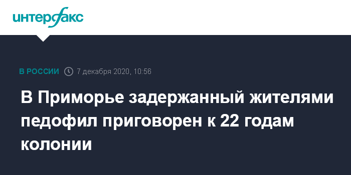 В Приморье задержанный жителями педофил приговорен к 22 годам колонии
