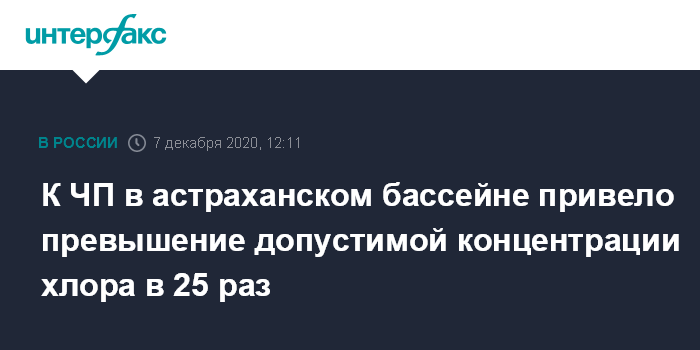 К ЧП в астраханском бассейне привело превышение допустимой концентрации хлора в 25 раз