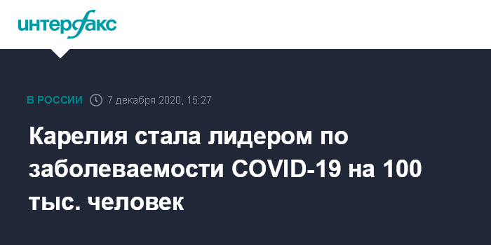 Карелия стала лидером по заболеваемости COVID-19 на 100 тыс. человек
